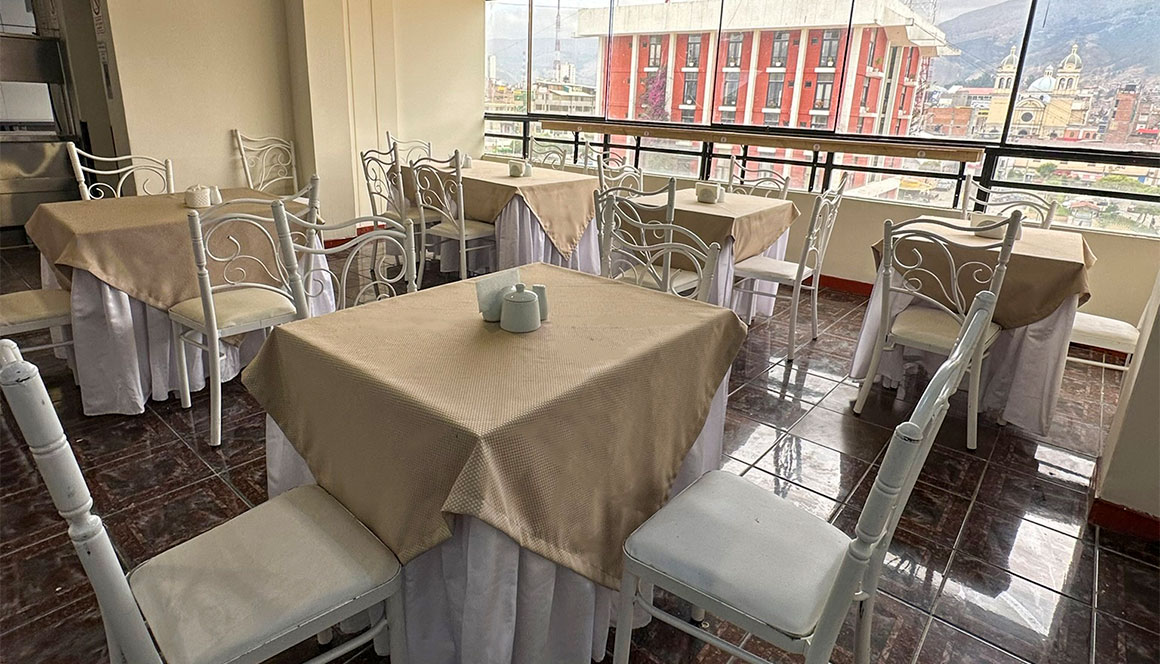 Nuestro hotel cuenta con un comedor a su disposición, con vista a la ciudad. Aquí disfrutará de un desayuno, también de diferentes postres y aperitivos que endulzará tu día.